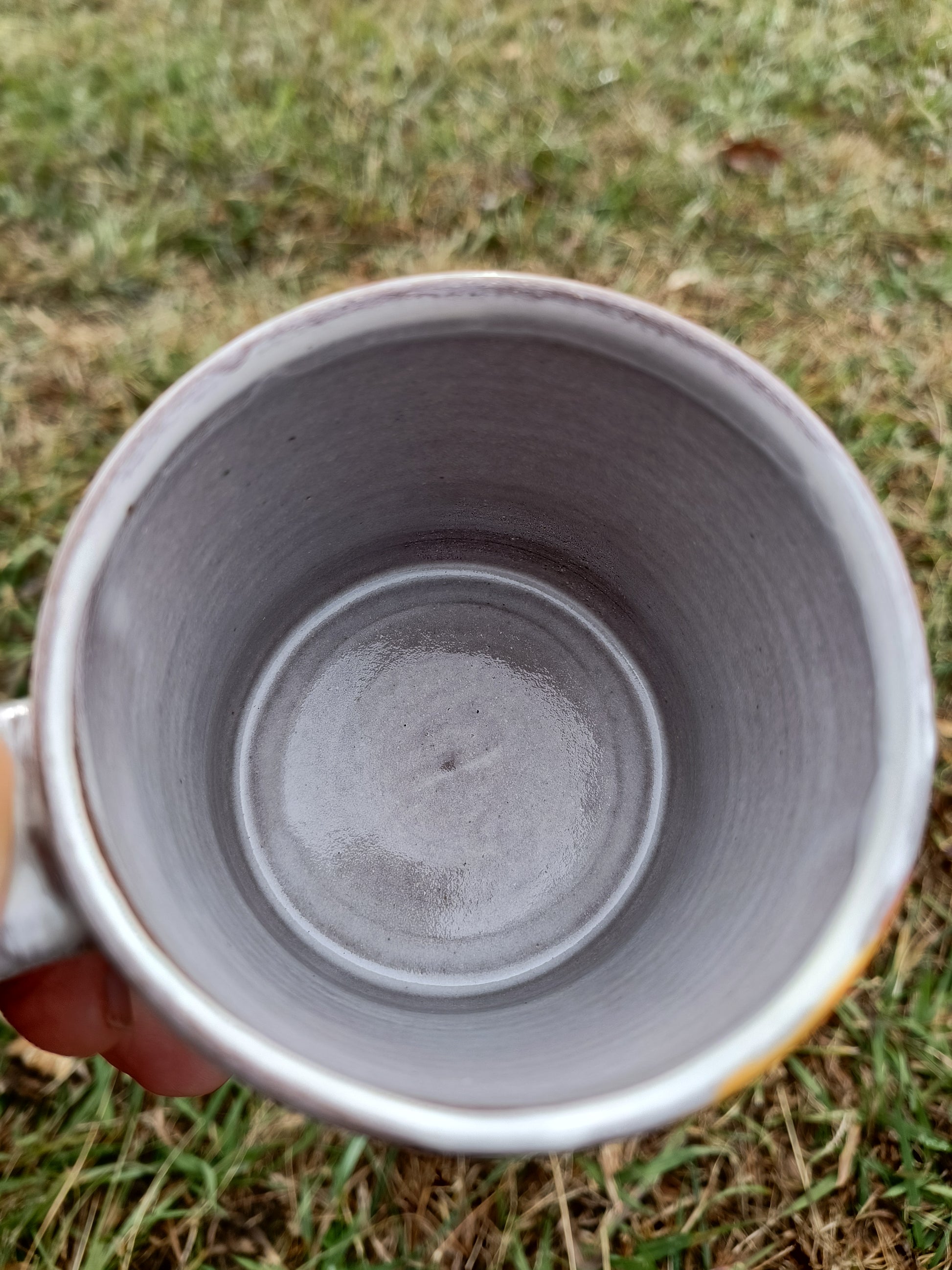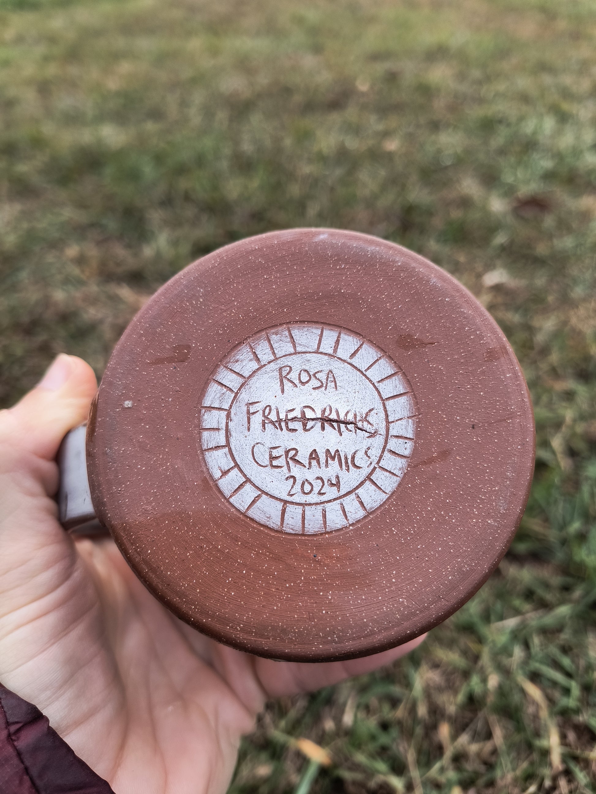 Has a small crack in the bottom that doesn't go all the way through and is filled in with glaze.